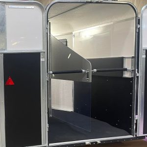 Van 1 place et ½, tout polyester, tractable sans permis BE*. Très spacieux, pour un confort optimal, le JMS est aussi bien adapté au transport d’un cheval (quelque soit sa taille) que d’une jument et son poulain. Eleveurs et amateurs l’apprécient grâce à ses systèmes de sécurité et son confort. En plus des équipements décrits sur ces pages, il offre en série : matelassures confortables, protections latérales galvanisées, roue de secours, roue jockey automatique, lumière intérieure, hublot avant et attaches intérieures et extérieures.